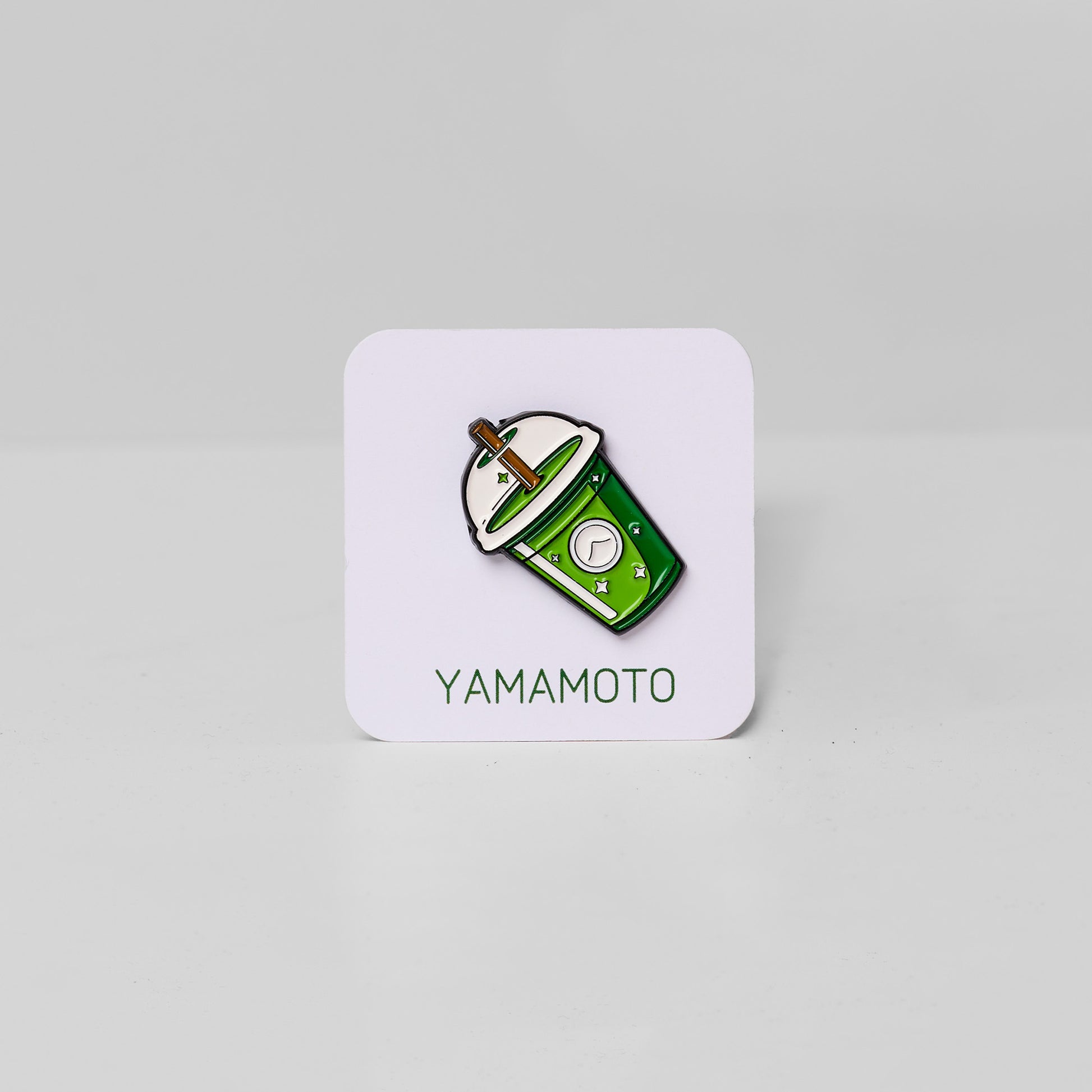 Ten pin to ukłon w stronę wszystkich, którzy zawsze mają przy sobie kubek matchy – niezależnie od miejsca i pory dnia. Wykonany z emalii w odcieniach soczystej zieleni, z białą pianką i słomką, przypomina ulubiony napój z Yamamoto Matcha Bar.